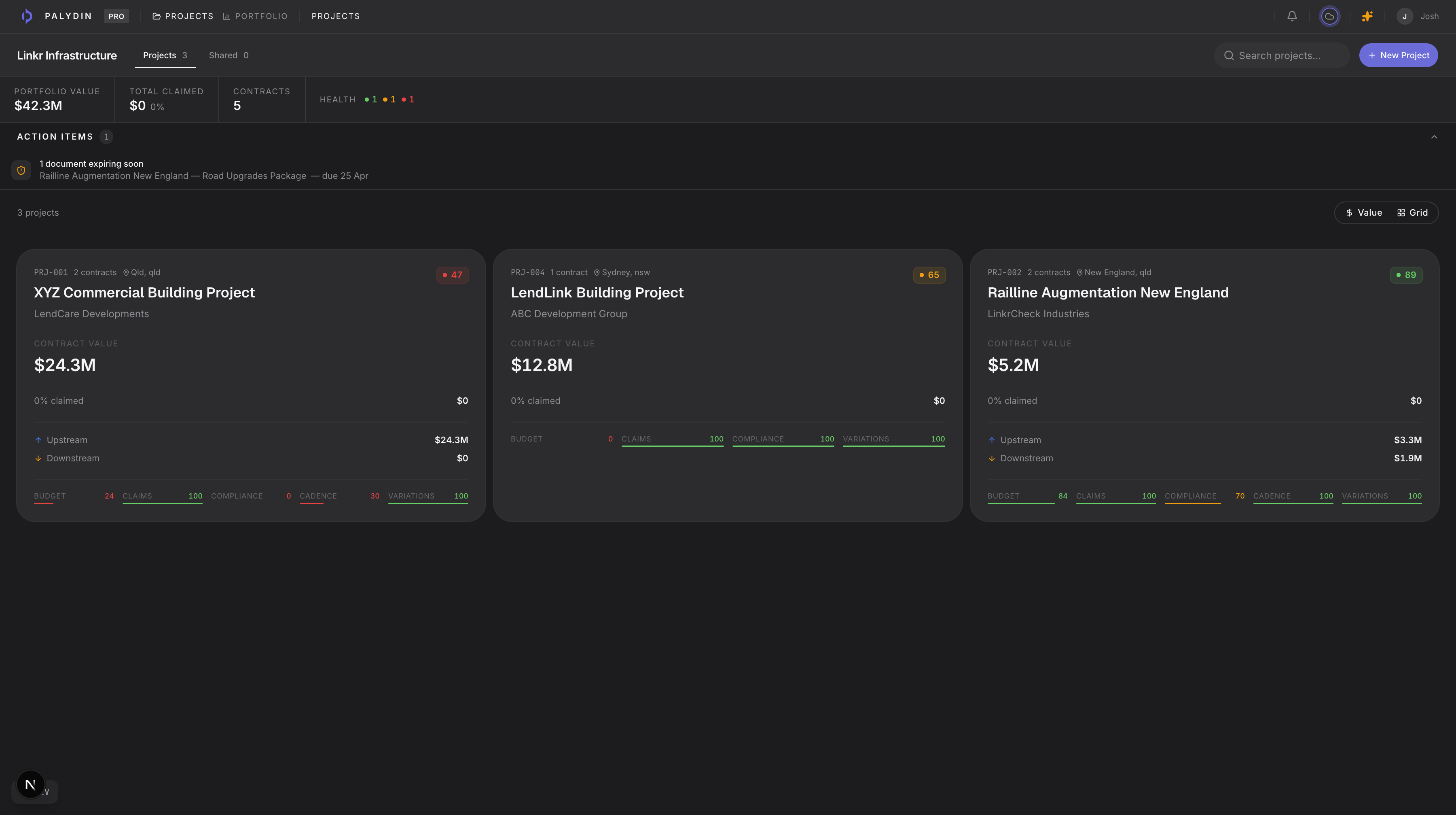 Contracts, claims, variations, compliance, and cost unified under one intelligent layer — with an AI that reads, reconciles, and drafts alongside your team.